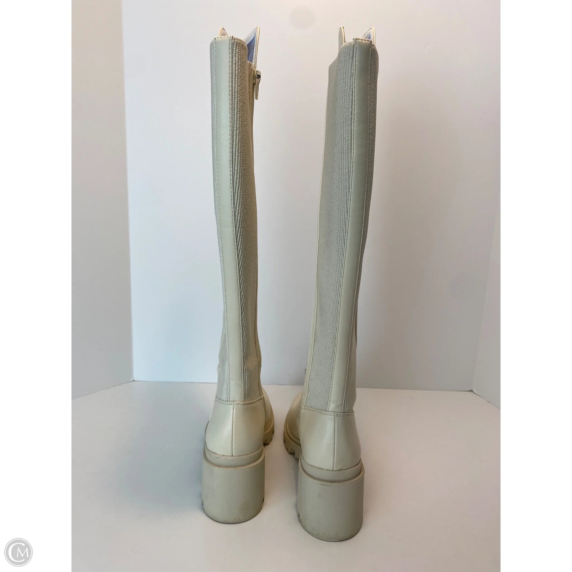 Boots Knee Heels By Clothes Mentor In Cream, Size: 7