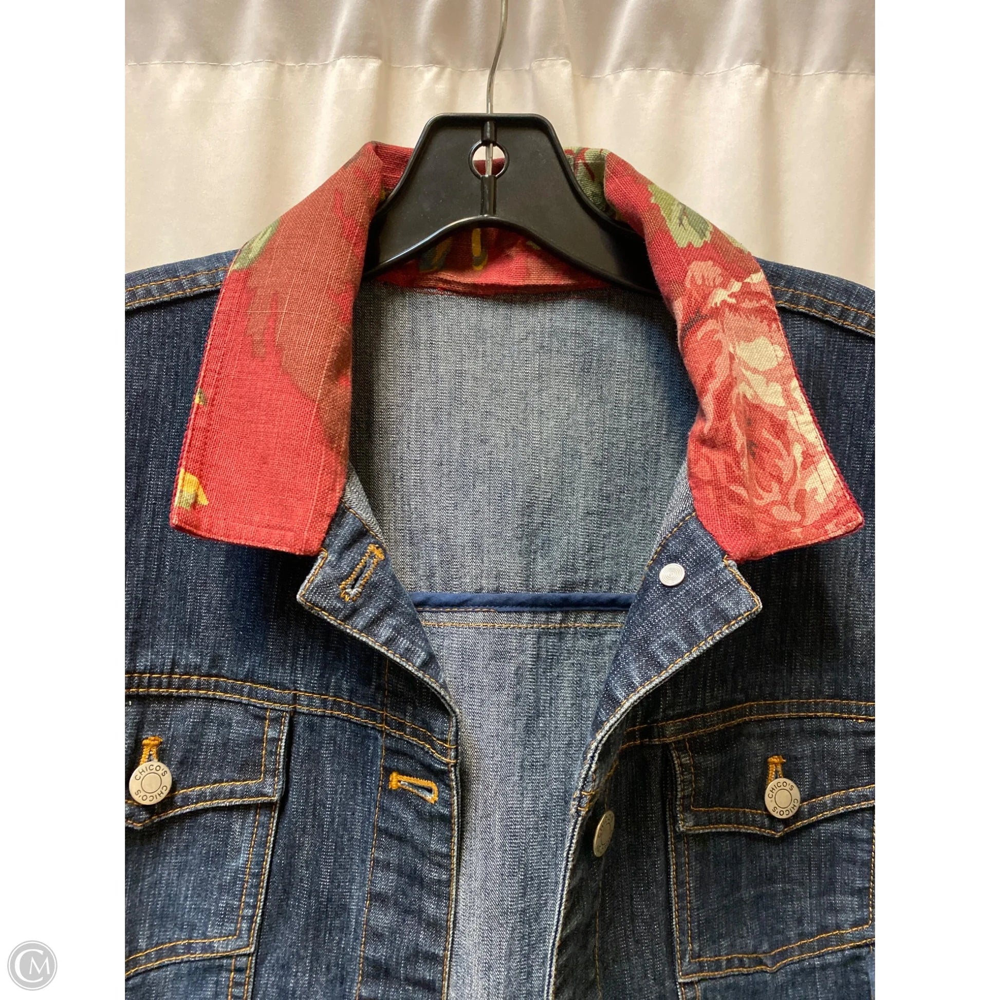 Jacket Denim By Chicos In Blue Denim, Size: Xl