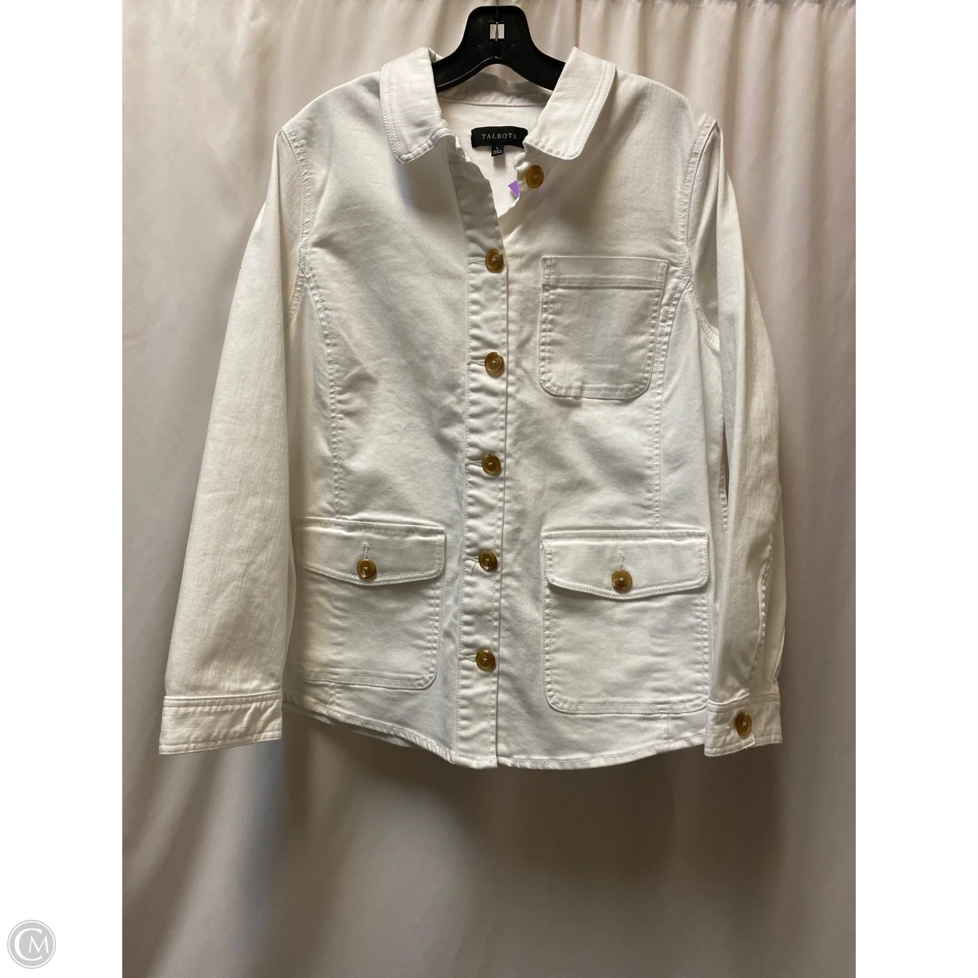 Jacket Denim By Talbots In White, Size: L