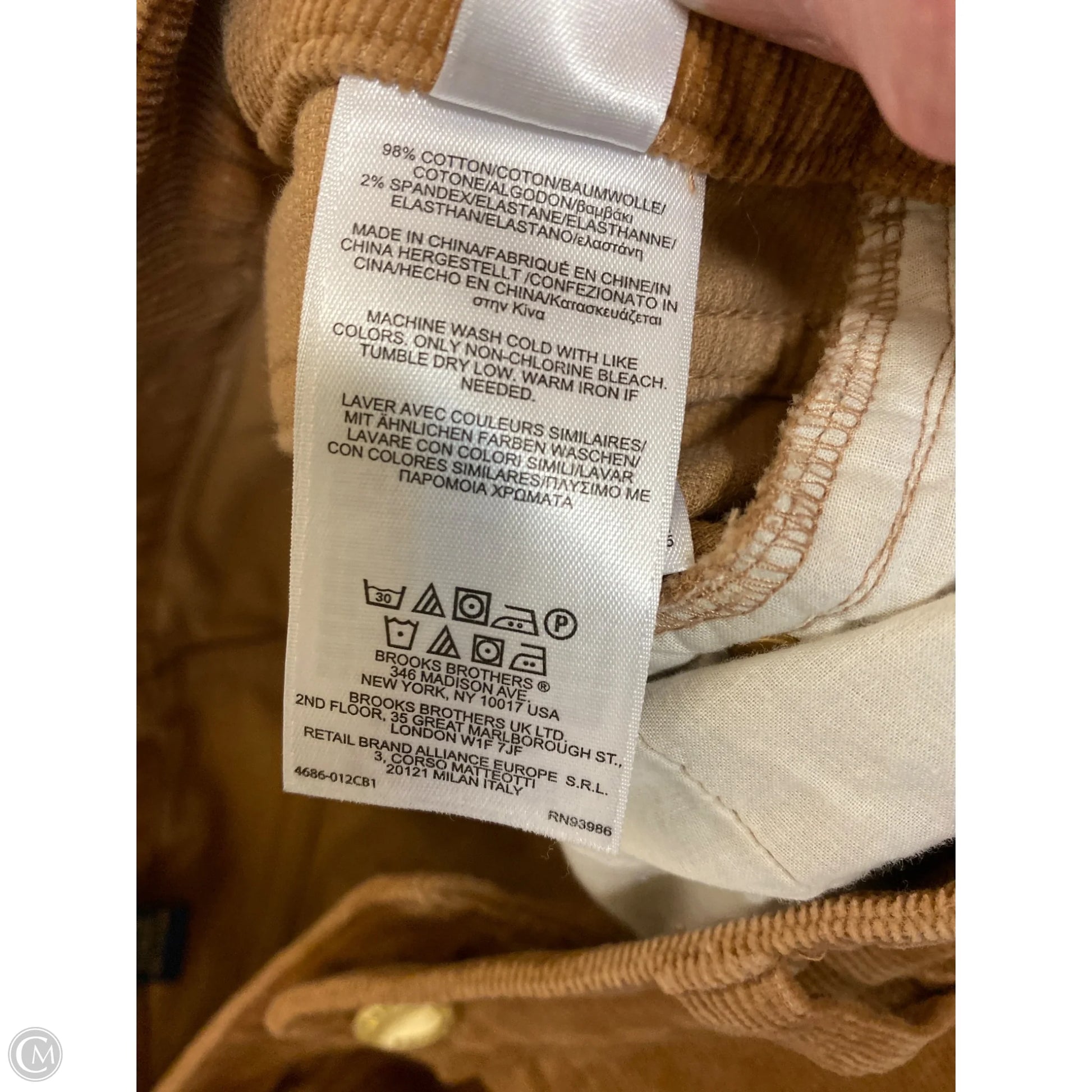 Pants Corduroy By Brooks Brothers In Brown, Size: 16