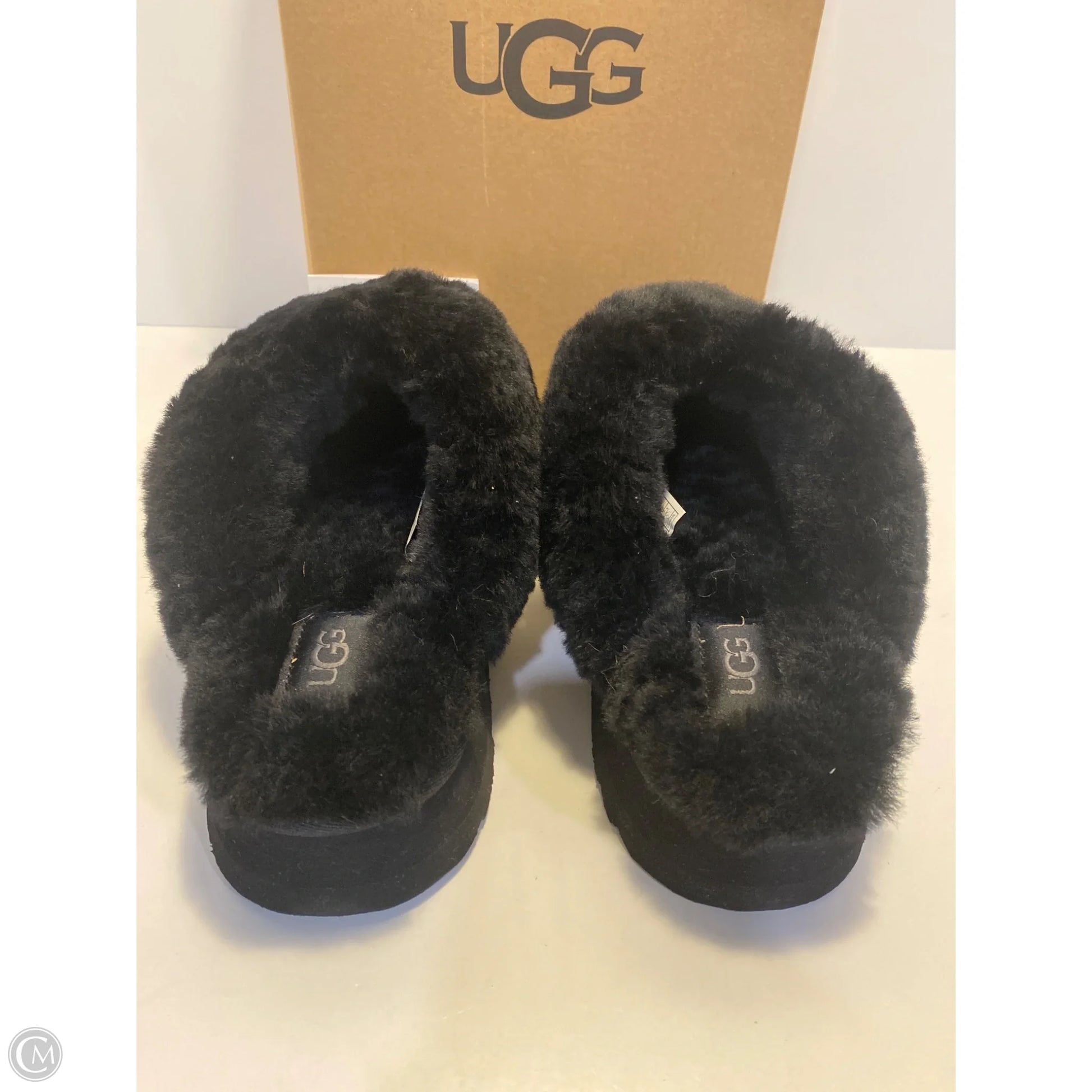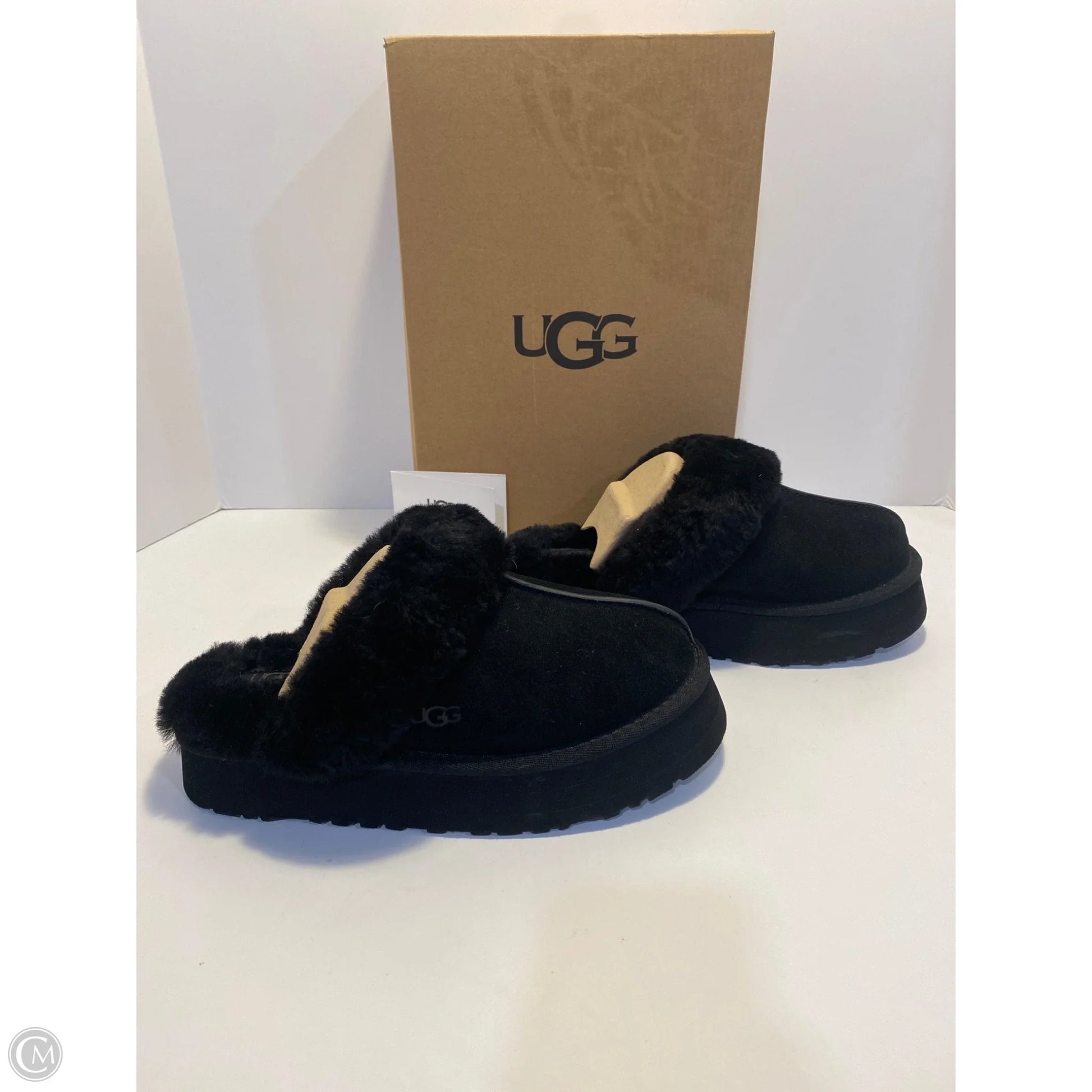 Slippers Designer By Ugg In Black, Size: 7